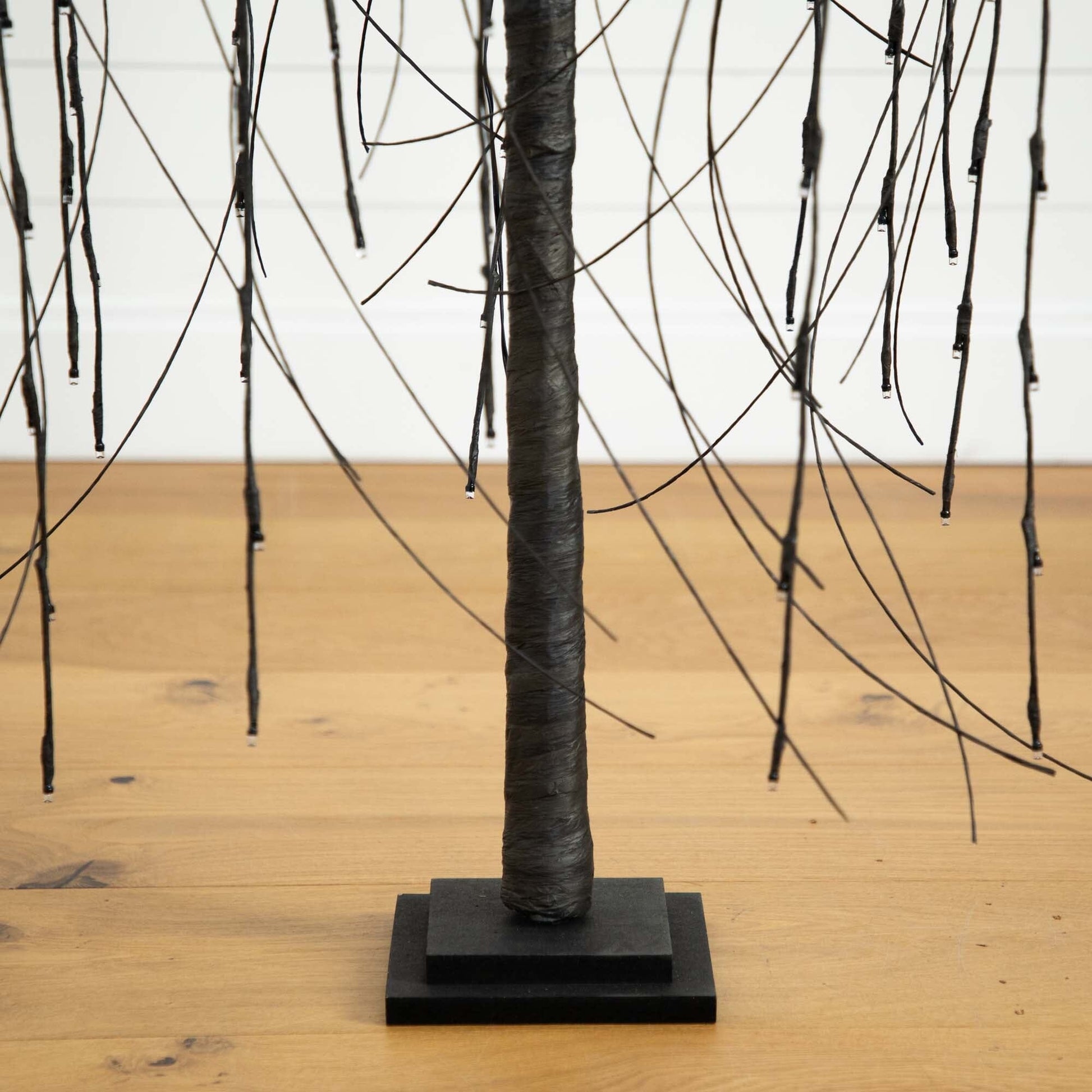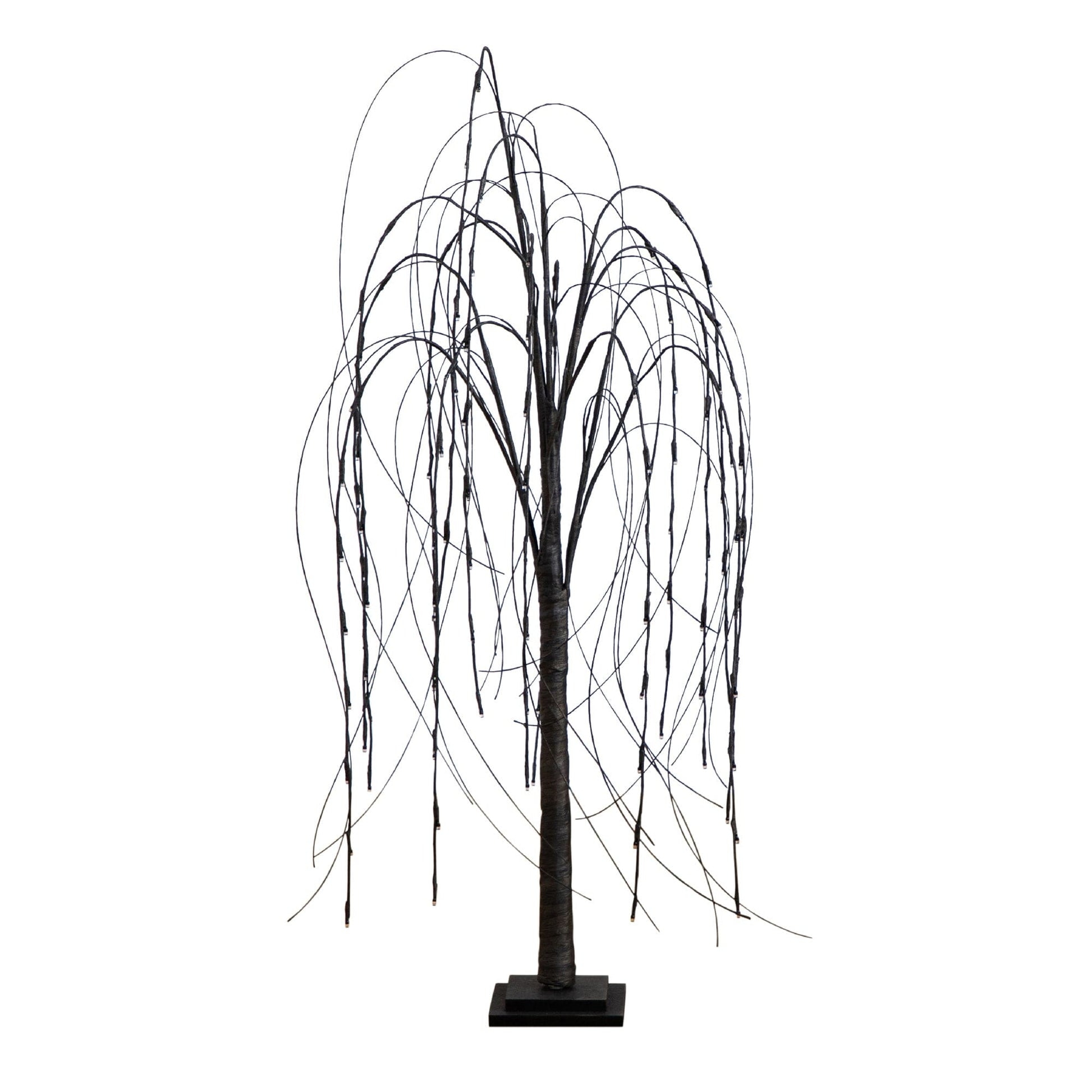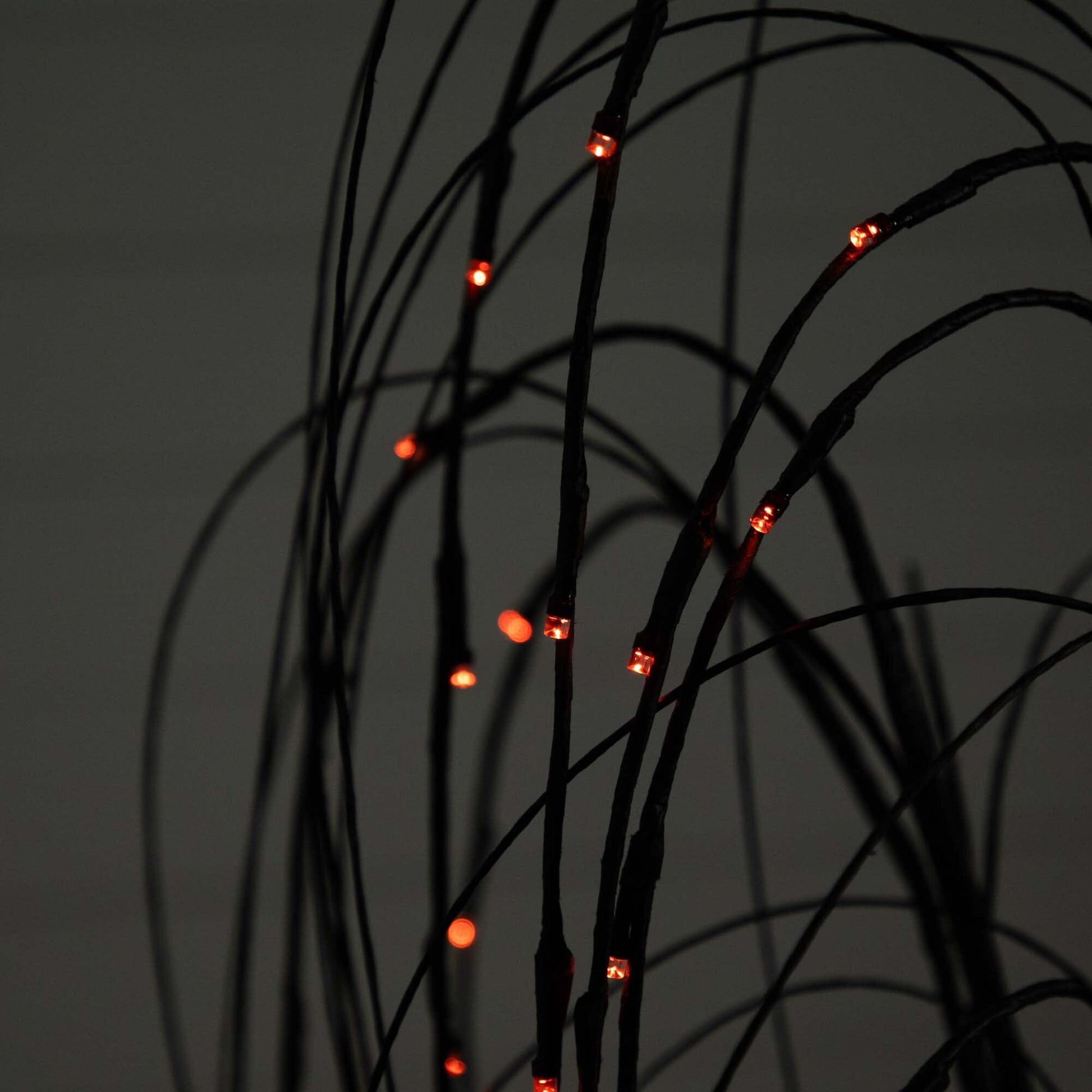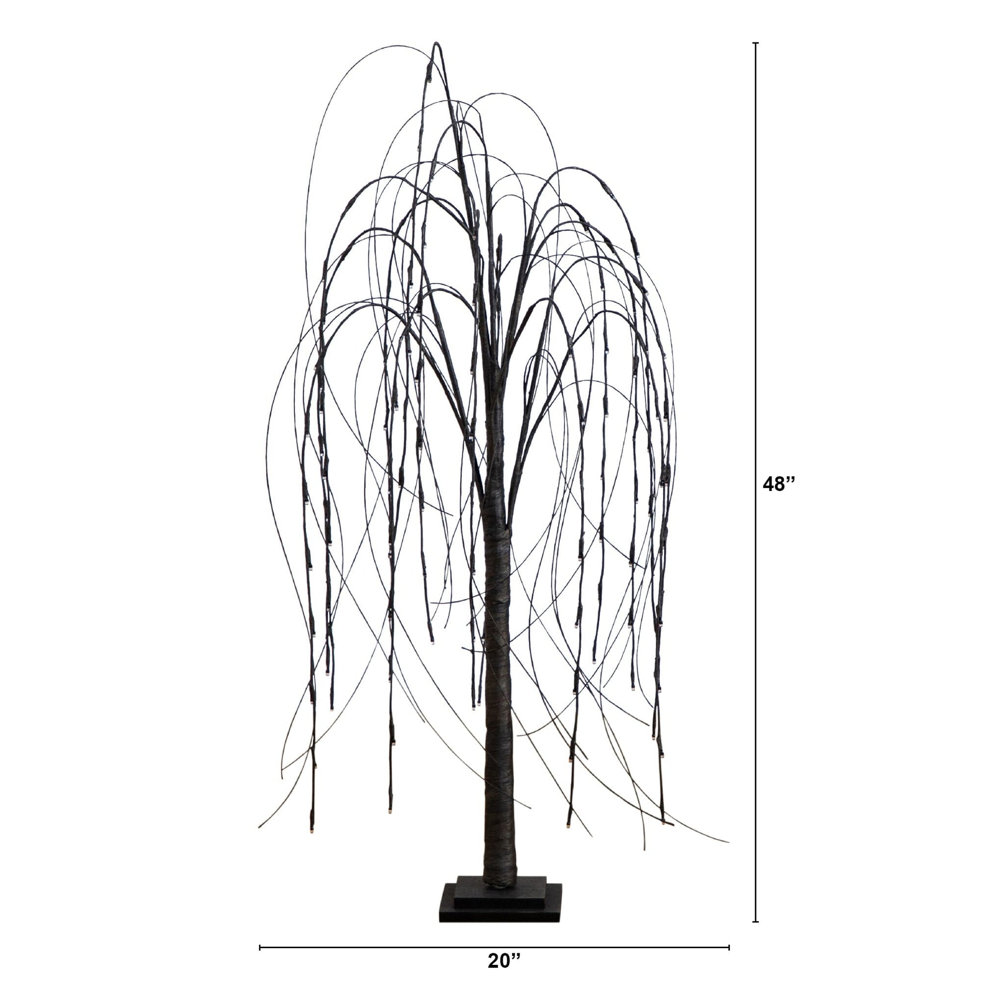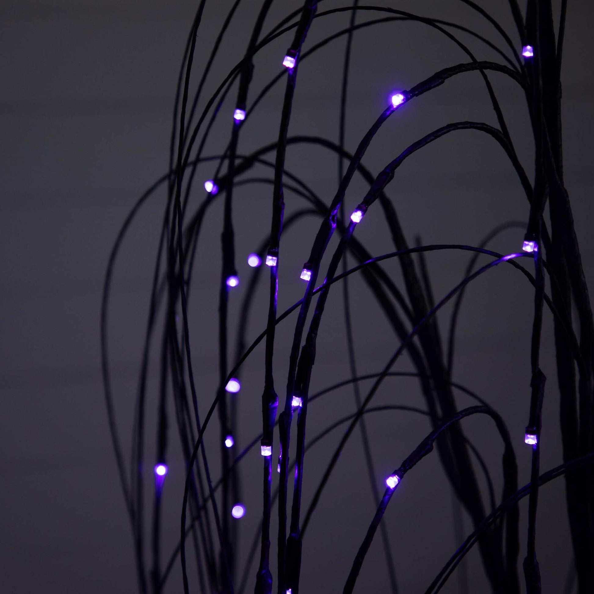 Welcome the scary season with this Halloween-inspired willow tree that'll delight any goblin. If you want a custom look, you can shape the branches, just like brushing a witch's hair, to make them resemble a long black draping mane. 120 multicolored pre-strung LED lights create a cozy show and you can alternate between purple and orange lights by pressing a button on the plug-in base. This creates a spooky feel perfect for your dream haunted house. The LED lights create a centerpiece that sets the mood for a hauntingly delightful atmosphere and the shaping is your hocus pocus time to shine. The energy-efficient lights save you both time and money on the electric bill. Standing 4' from a sturdy black base, it adds an eerie and enchanting touch to any space. Decorate with other accents such as wreaths, spiders of pumpkins.