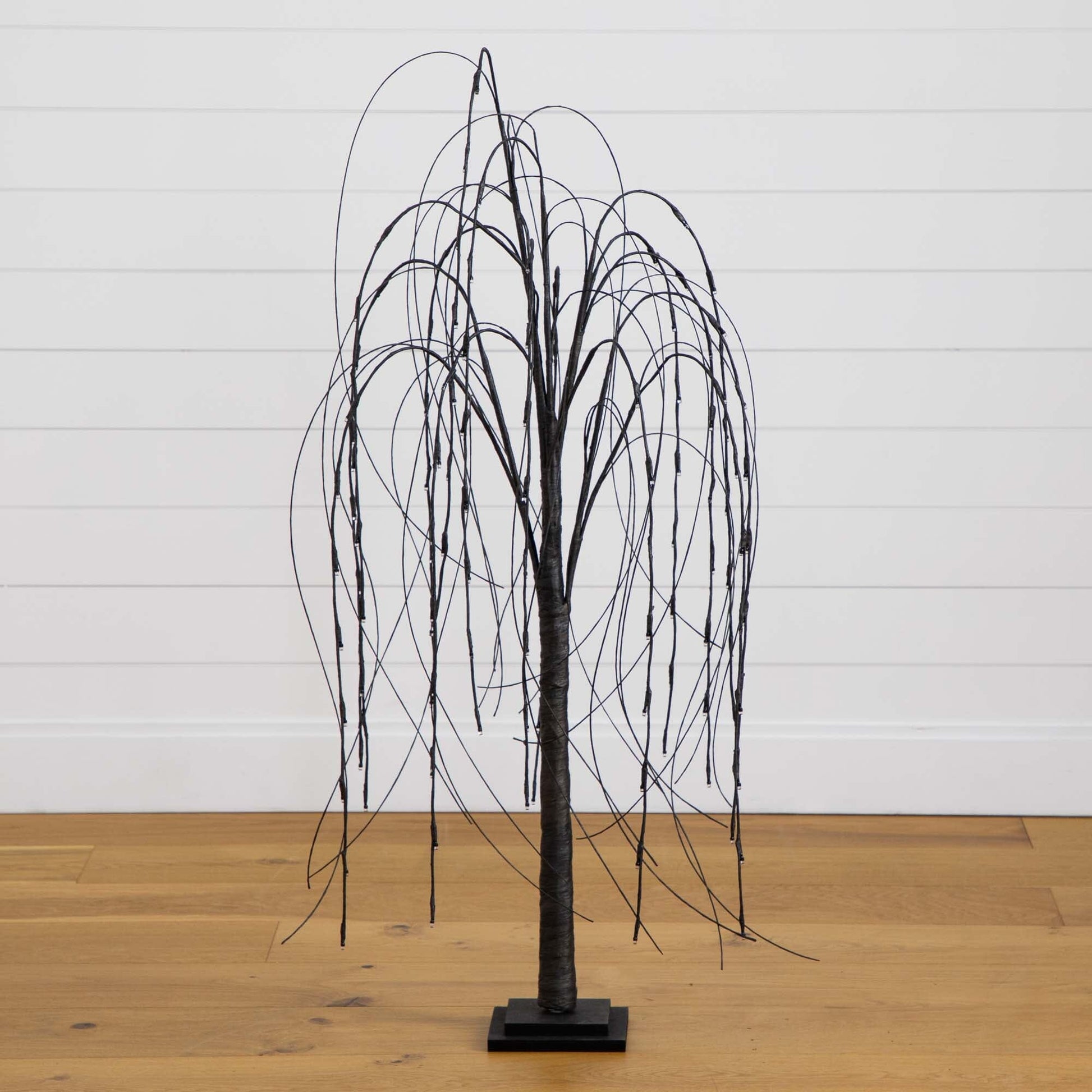 4’ Pre-Lit Halloween Black Willow Artificial Fall Tree with 120 Orange & Purple LED Lights