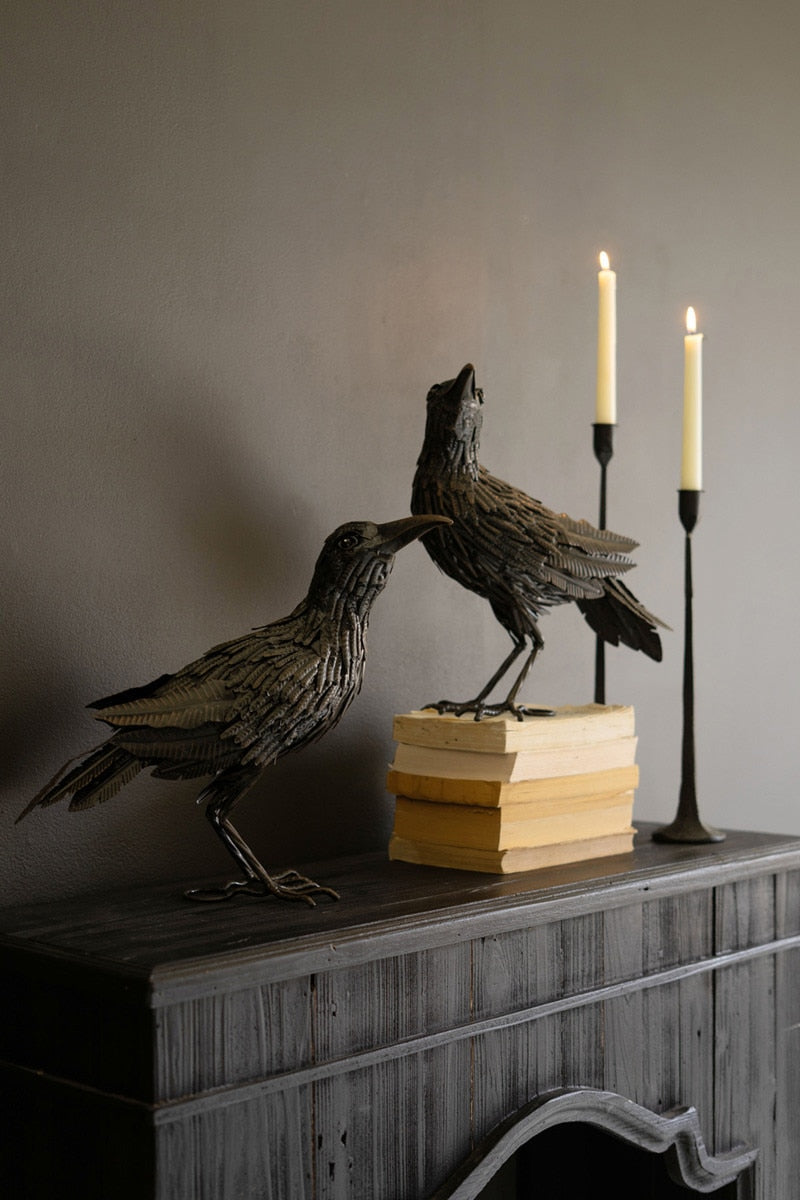 Style these crow figurines together for a dramatic layered effect or display them separately to add subtle Halloween intrigue throughout your home. Their dark metal design pairs effortlessly with candles, pumpkins, and seasonal foliage for a perfectly haunted atmosphere.