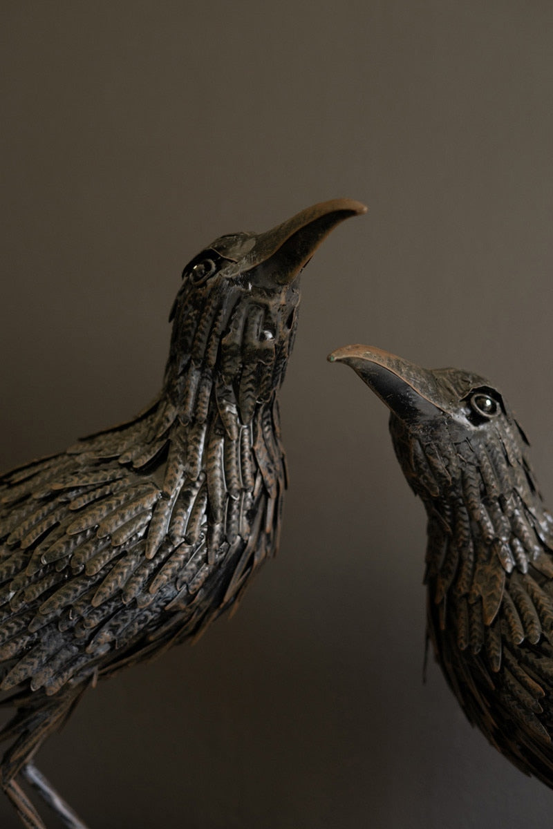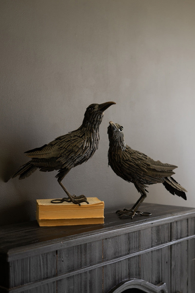Black Metal Halloween Crow Figurines | 2 Sizes