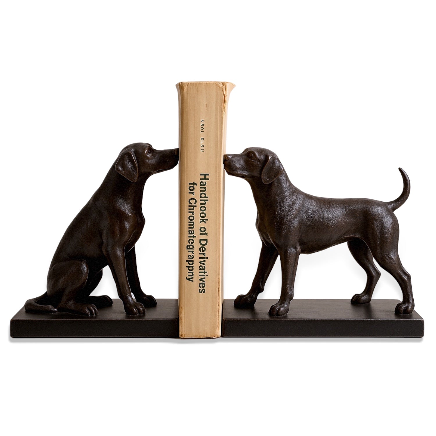Keep your books neatly organized with this set of black resin dog bookends. Featuring two playful dog figures, this set brings a touch of charm to shelves, desks, or tabletops. The design of these dog bookends appears to resemble Labrador Retrievers or similar sporting breeds. Crafted from resin with a sleek black finish, these bookends are perfect for holding books upright while adding a decorative accent to your space.