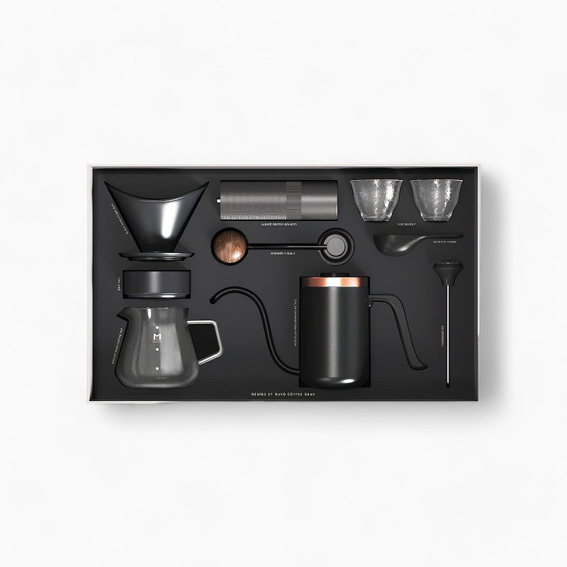 Introducing the Ultimate Pour Over Coffee Maker Kit, the perfect collection for any coffee lover. This comprehensive set includes a high-quality coffee pot, a precision grinder, a convenient sharing pot, and a filter cup, all designed to enhance the coffee brewing experience. This all-in-one Brewed Coffee Gift Set features a carefully curated selection of 9 barista-approved accessories to elevate your home coffee experience.