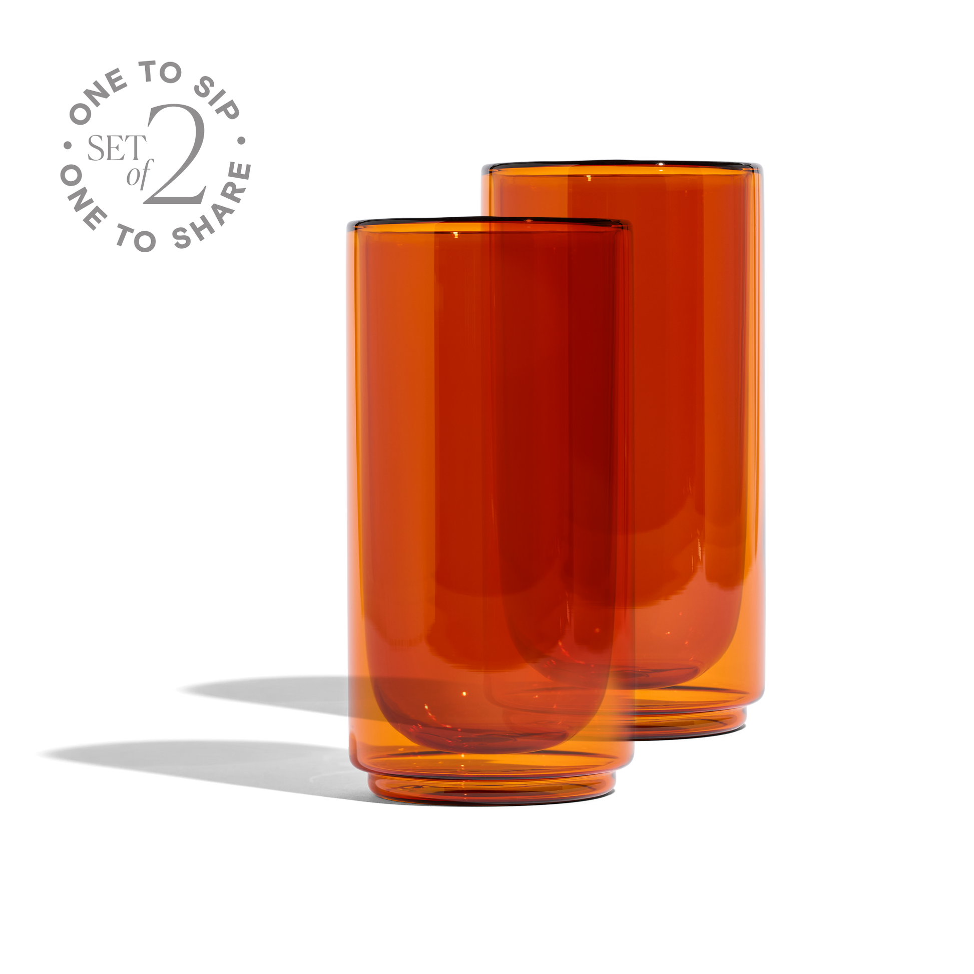 Discover new clarity with Cove. Some things never go out of style—like the warm glow of amber glass, the balanced weight of a perfectly designed vessel, and the simple pleasure of a well-poured drink. Cove is our take on timeless glassware, reimagined for the modern home. The Cove 16 oz Glass Pint is currently available in a set of two.