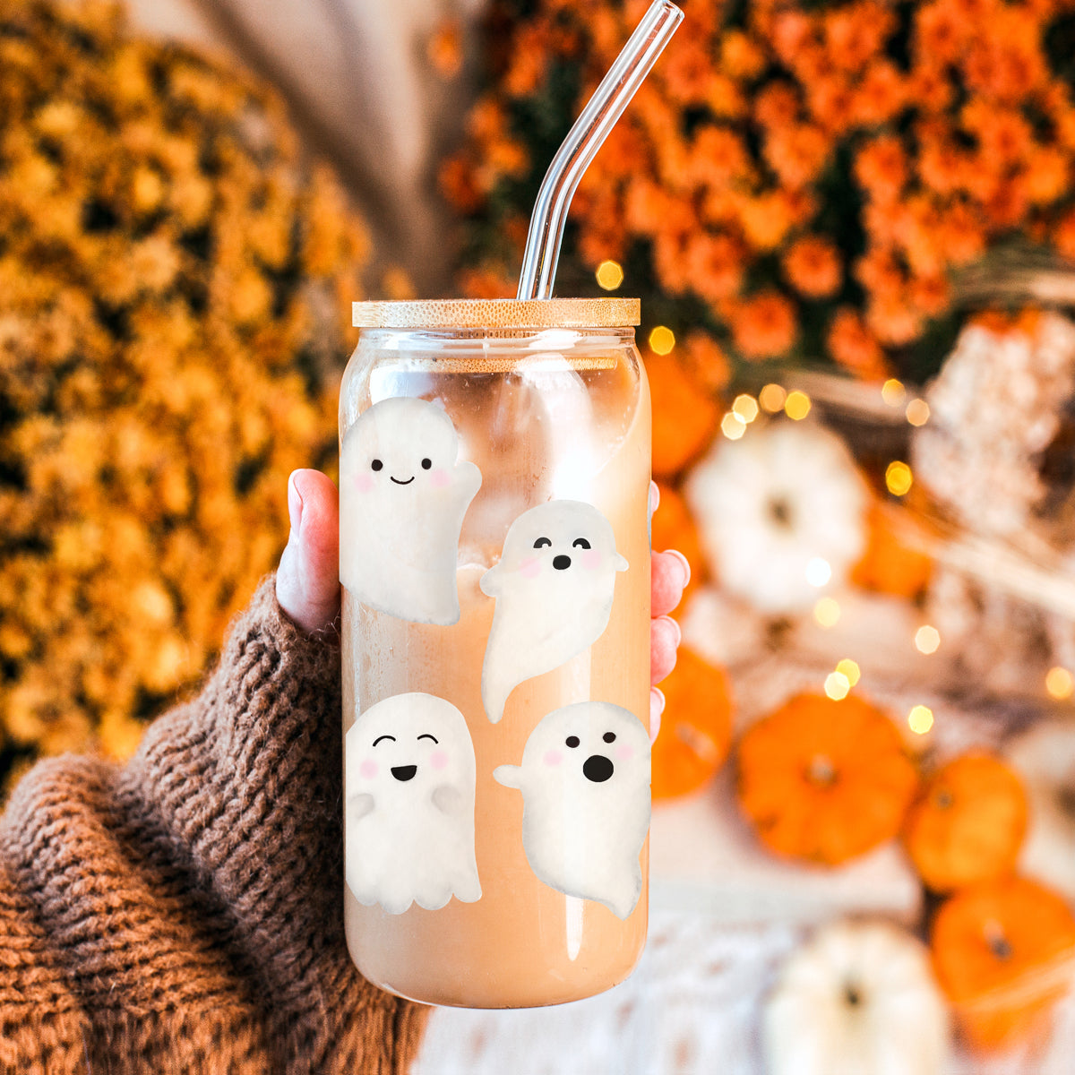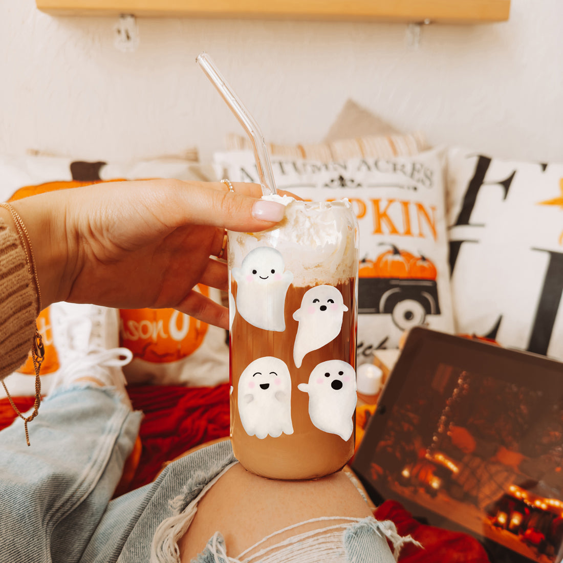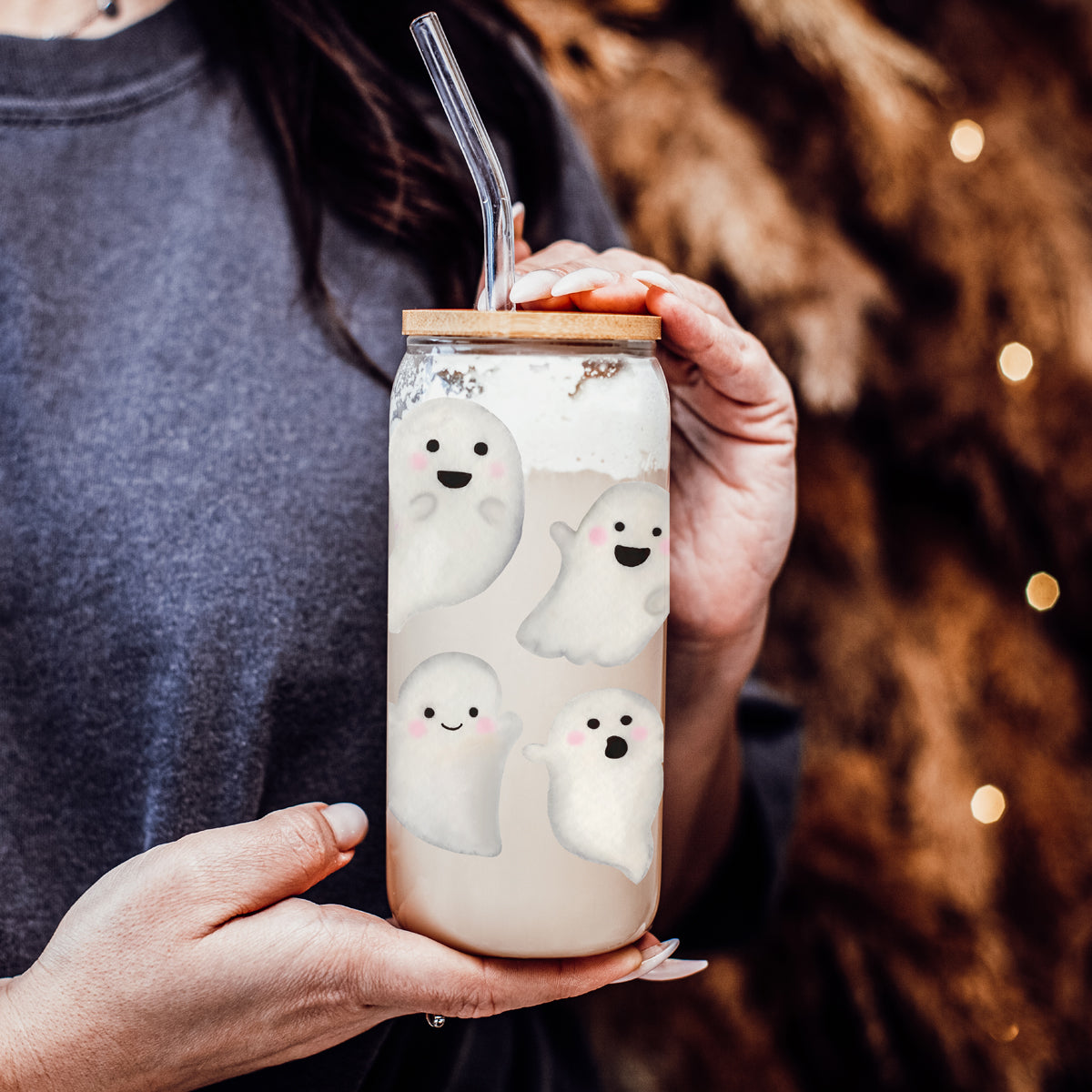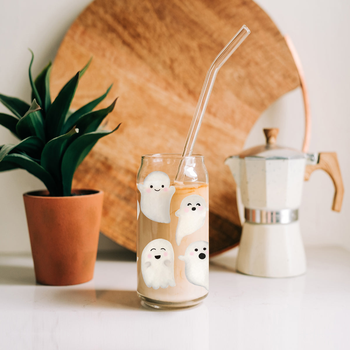 Meet the tumbler that's more charming than scary - featuring a delightful squad of friendly ghosts who are here to make your beverages absolutely enchanting! This 20oz glass tumbler proves that being spooky can also be totally adorable.