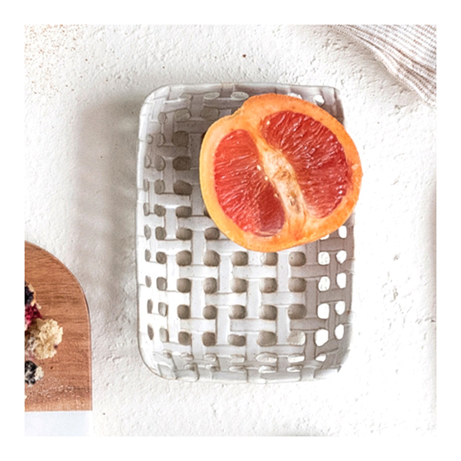 Handmade Reactive Glaze Cream Stoneware Basket Dish