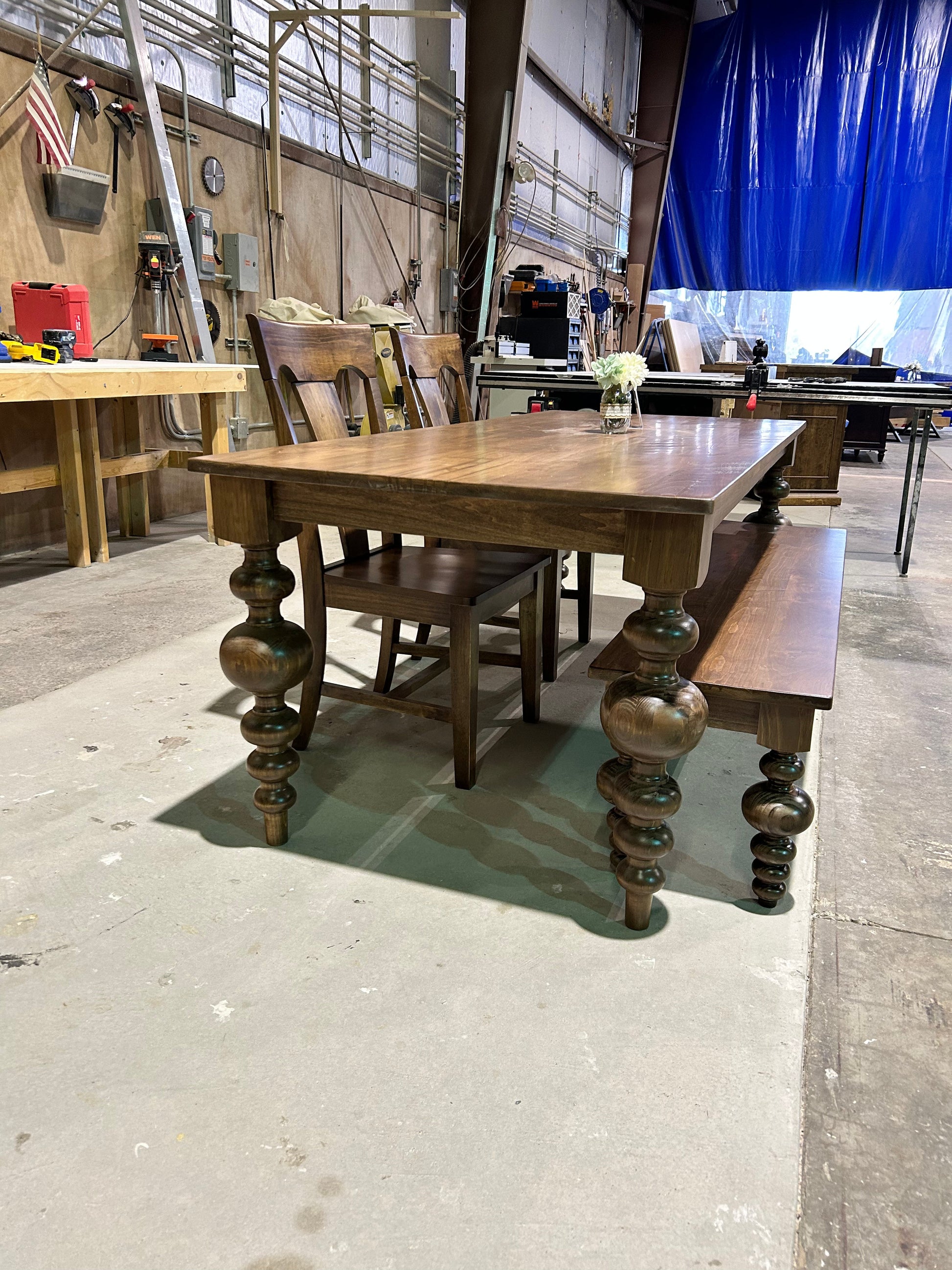 Our Massive Modern Spindle Leg style table is absolutely stunning! This four leg solid wood dining table is one of our newest leg styles and is absolutely stunning!