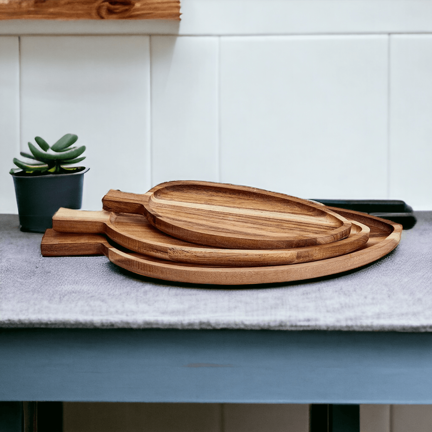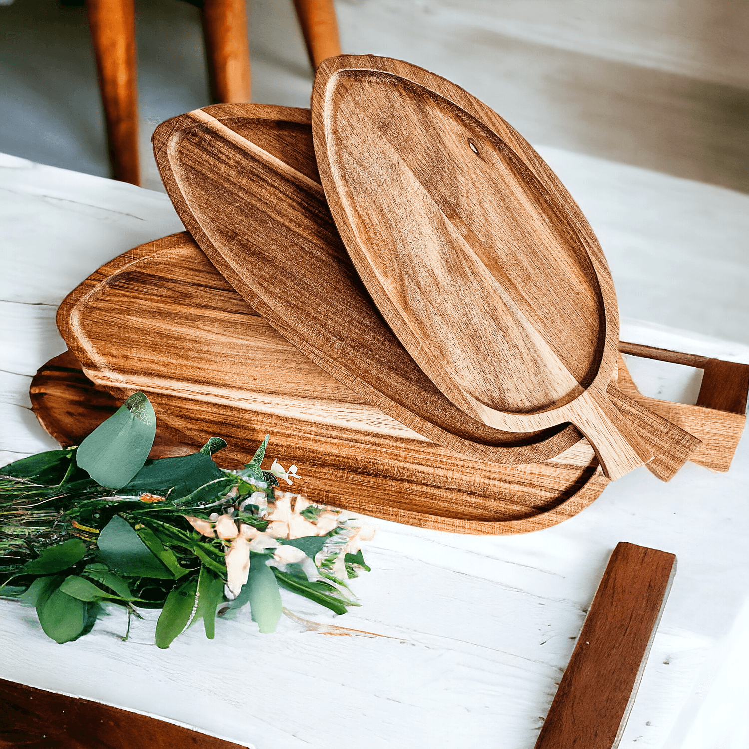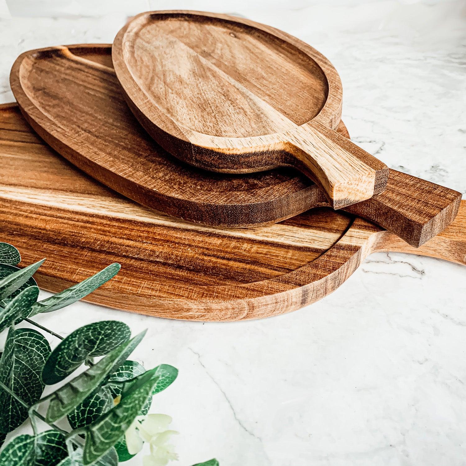ACACIA WOOD SERVING LEAF TRAYS