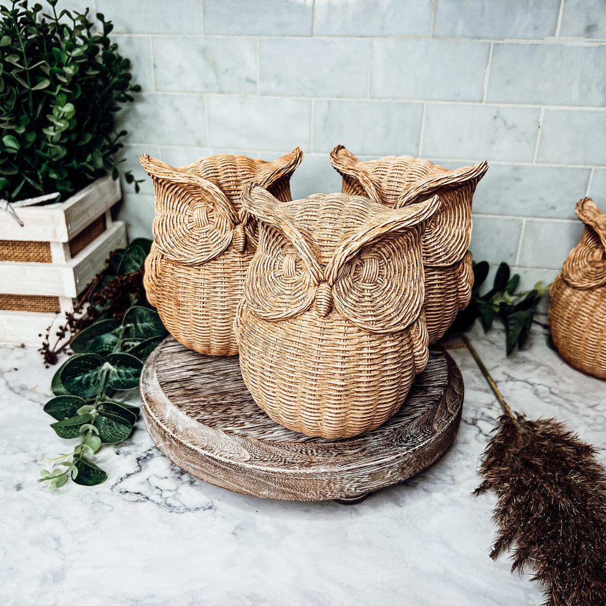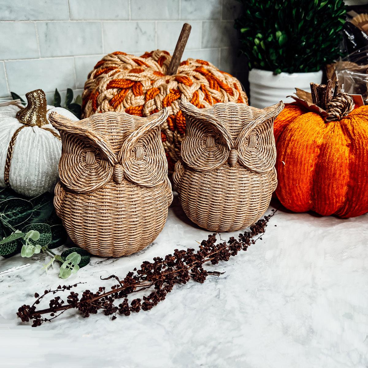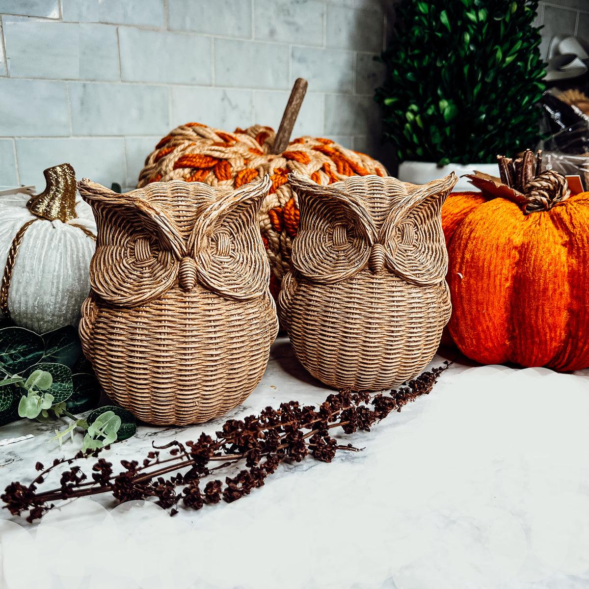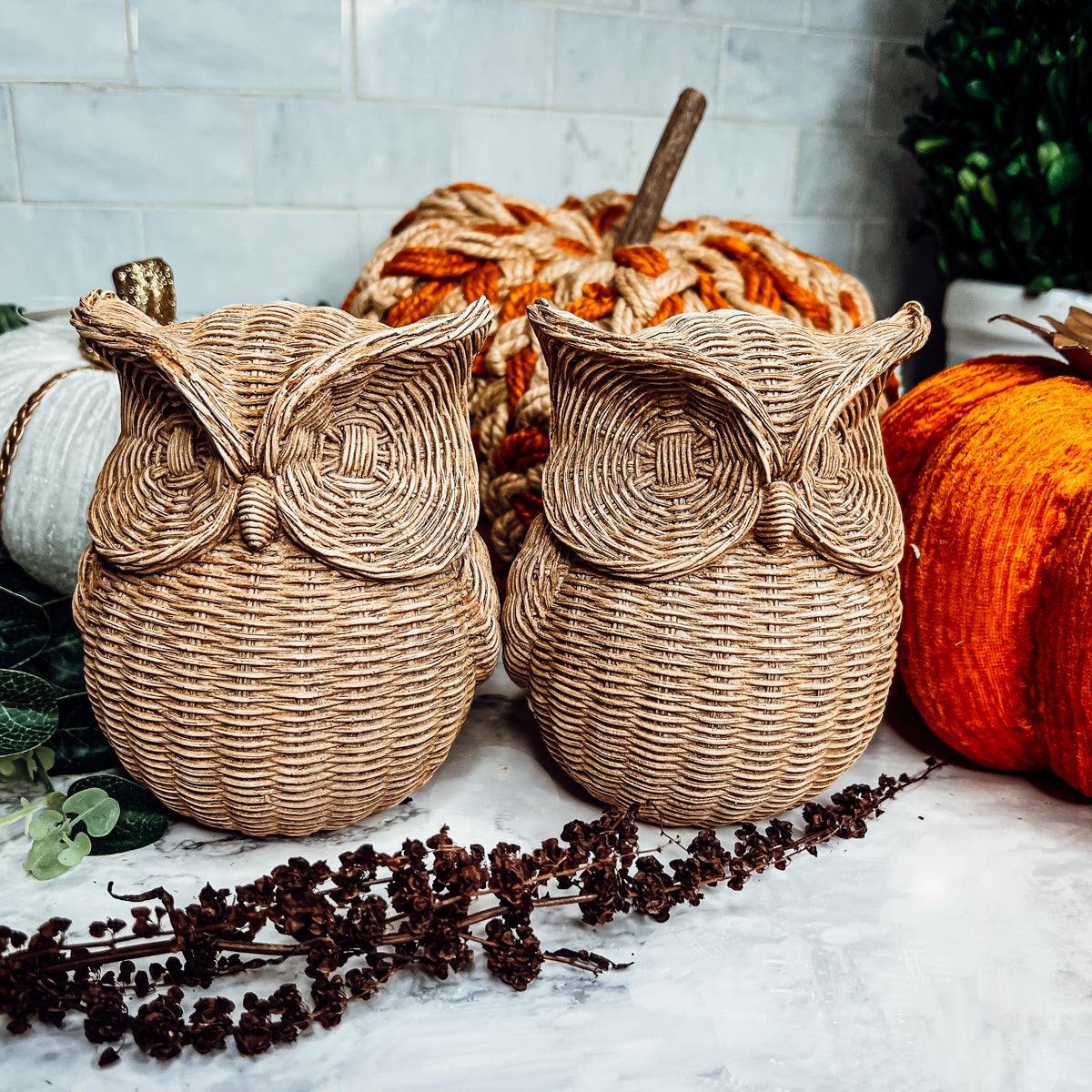 This owl tabletop accessory, featuring a basketweave design, looks rustic as a bookend or decorating a side table in your living room.