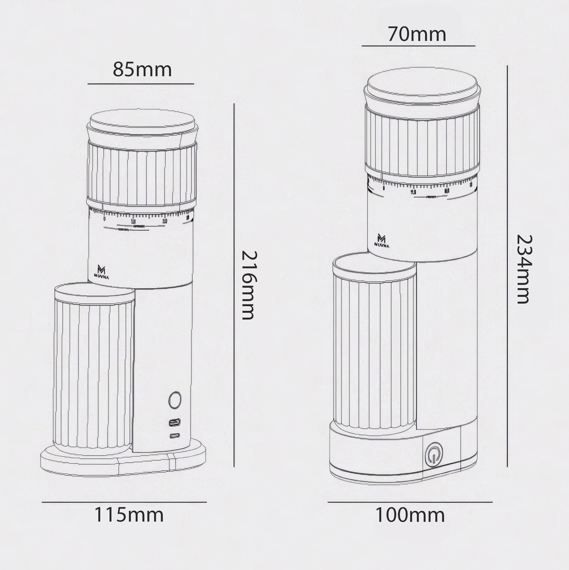 Elevate your coffee ritual with our MUVNA electric grinder. Featuring a precision-engineered five-star steel grinding core, this professional-grade tool delivers remarkably consistent particle size while minimizing heat generation. Experience enhanced flavor clarity and aromatic complexity in every cup as your specialty beans are transformed with CNC-machined precision.