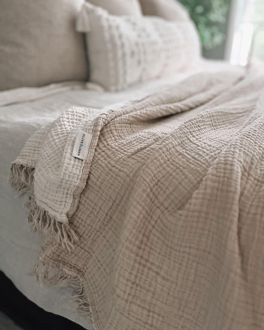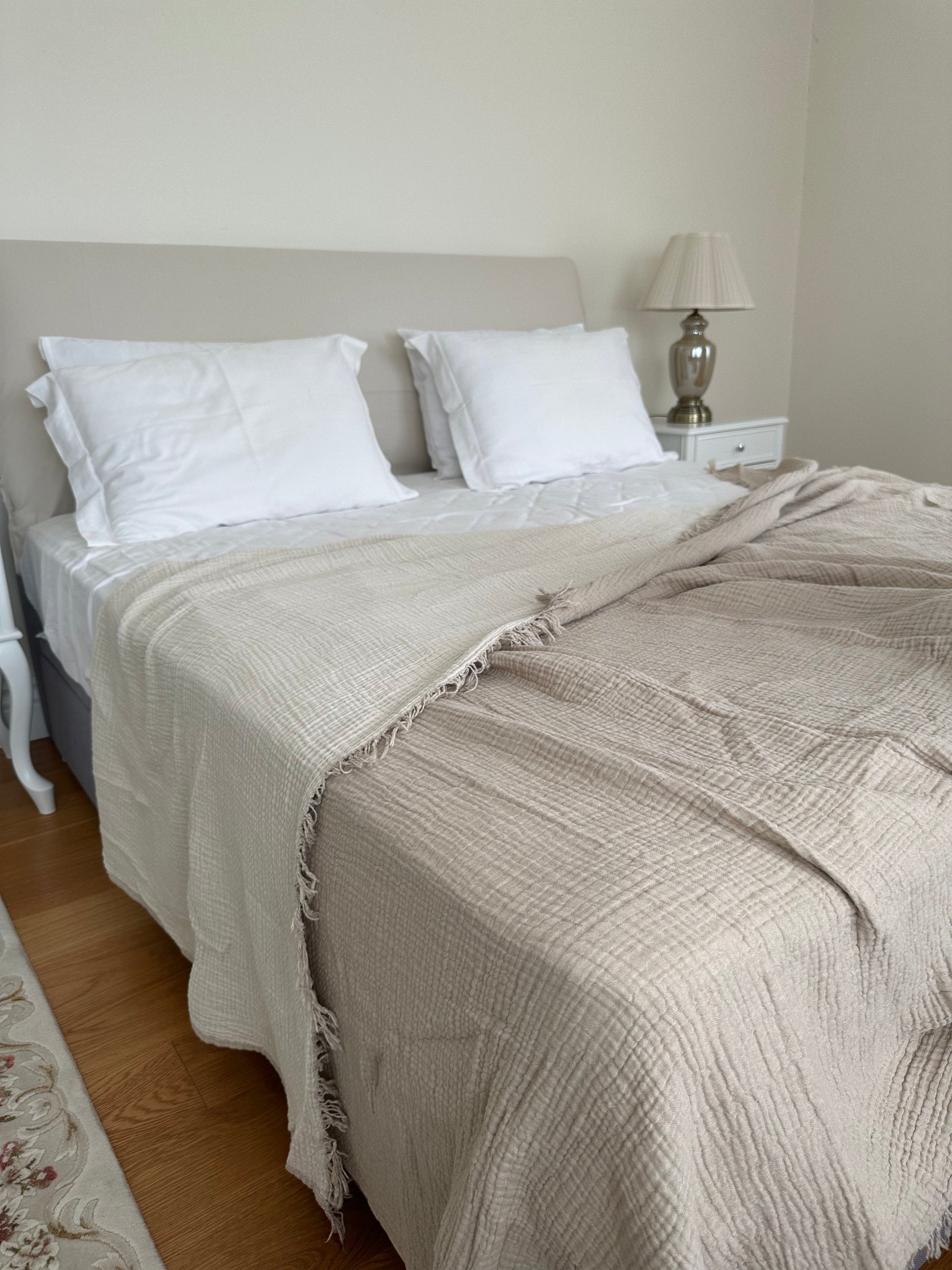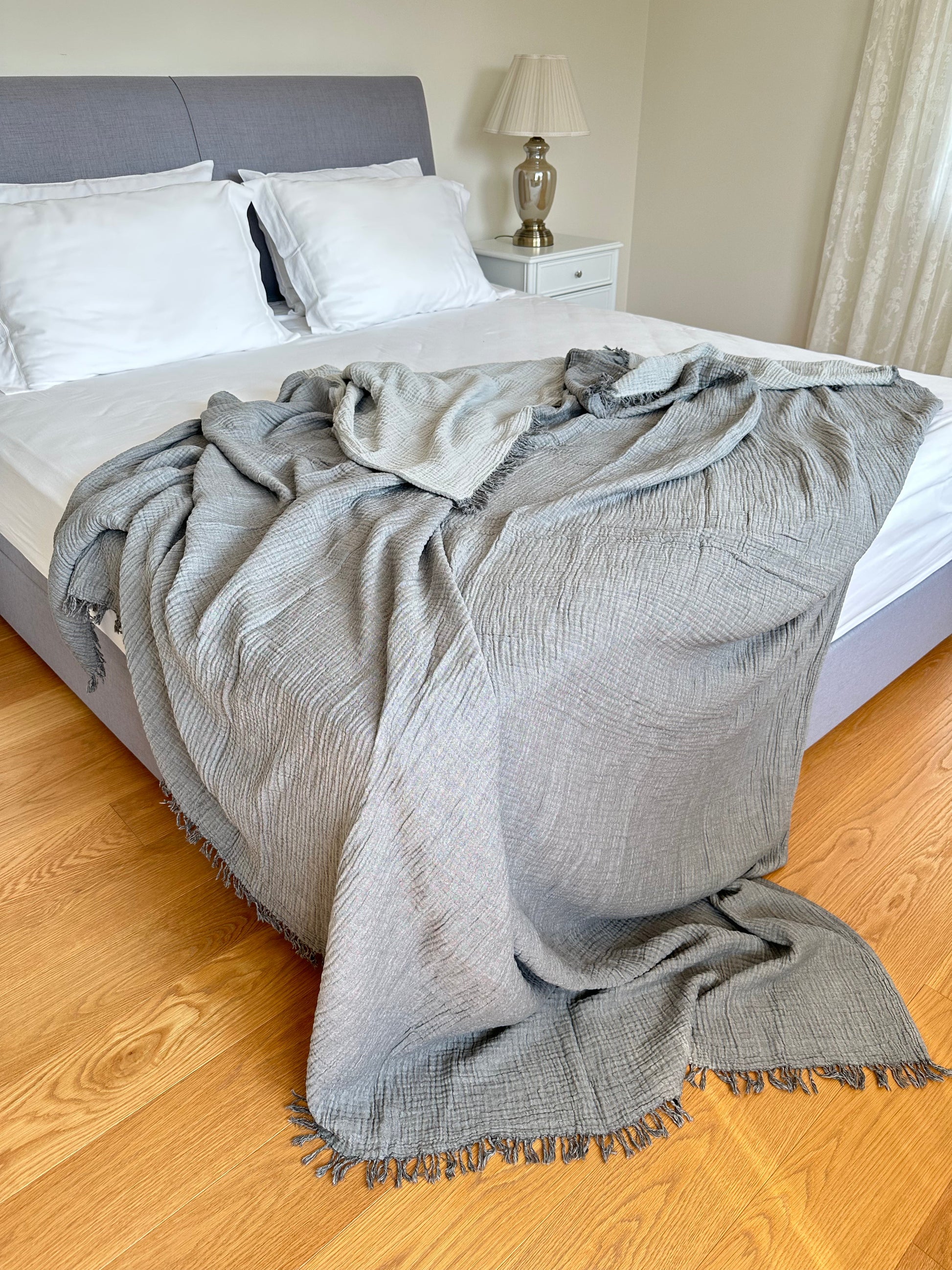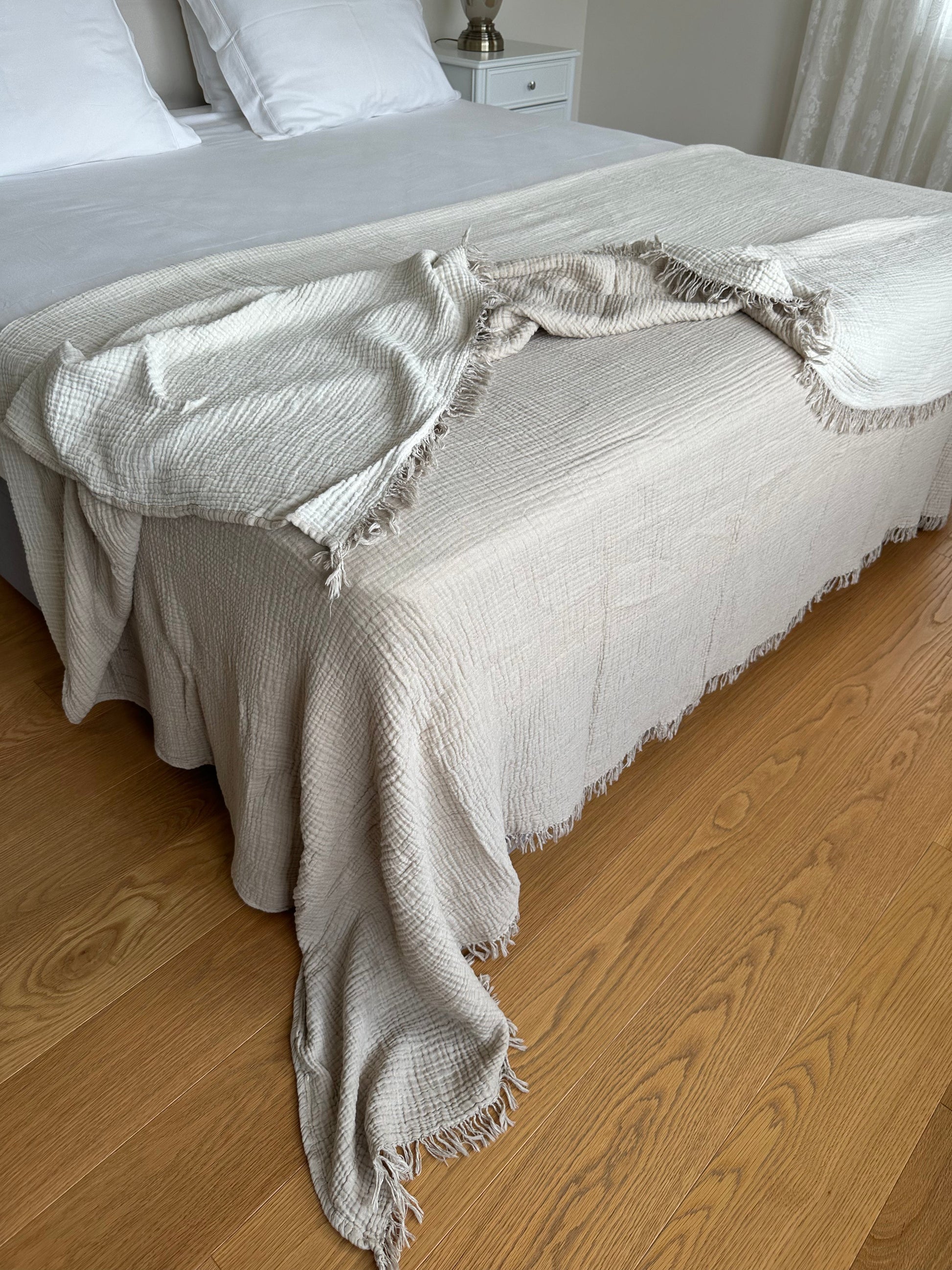 Expertly hand crafted from 4 layer muslin cloth woven from premium long-staple Turkish cotton, the Soho Blanket will bring a casual appeal to your sofa or bed.
