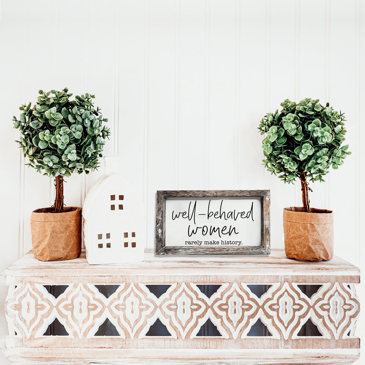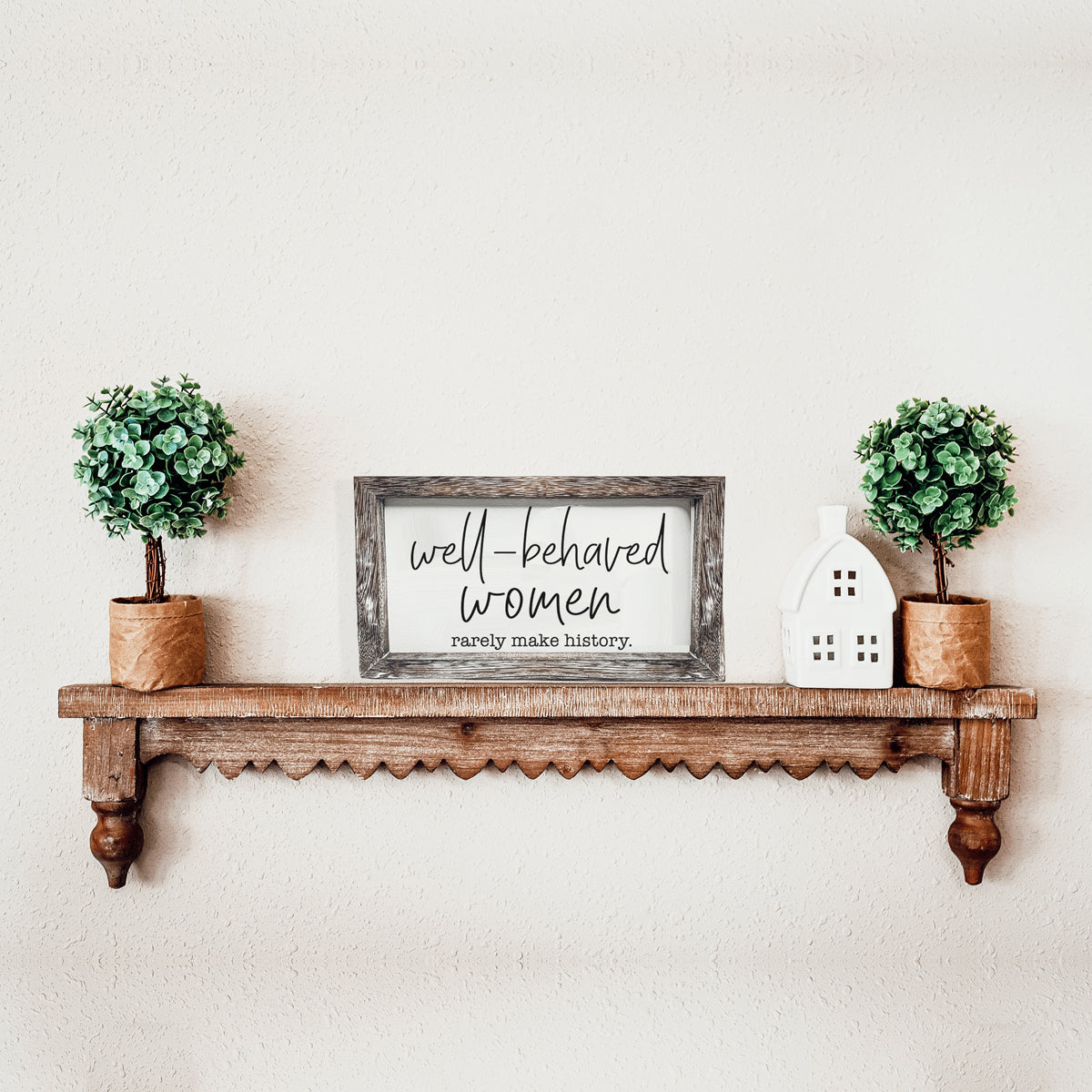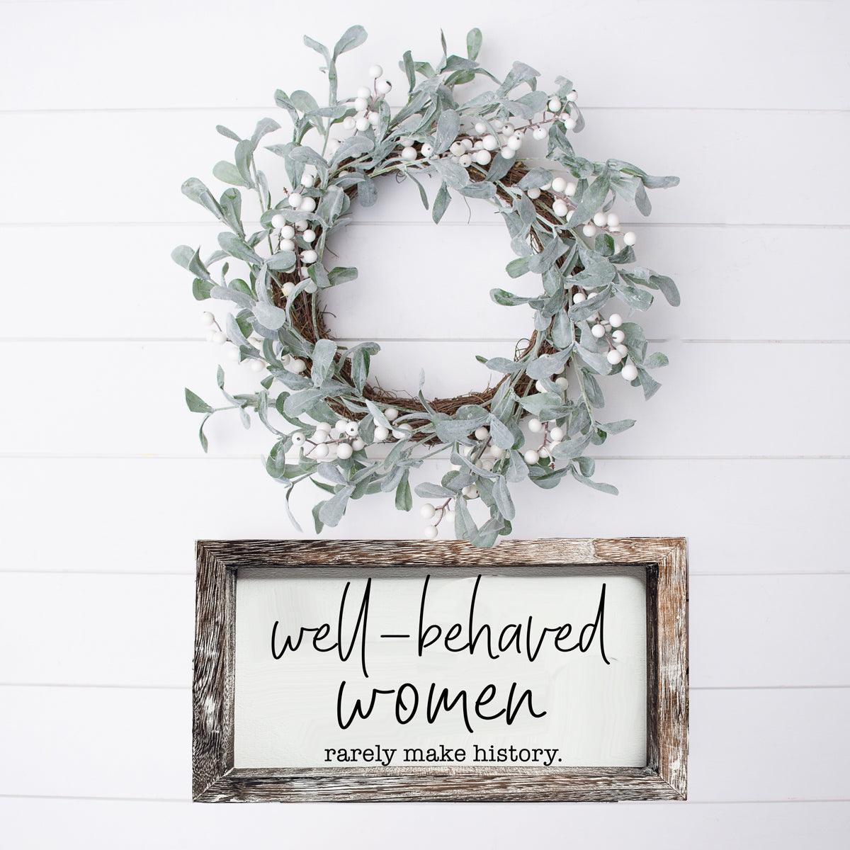 This stylish and empowering Well Behaved Women Sign is the perfect choice for any woman. Crafted with durable wood and a striking finish, it's a timeless reminder that history is made by those who break the rules. With its powerful message, it also makes a great gift for your favorite female trailblazer. Even if that trailblazer is you ;)